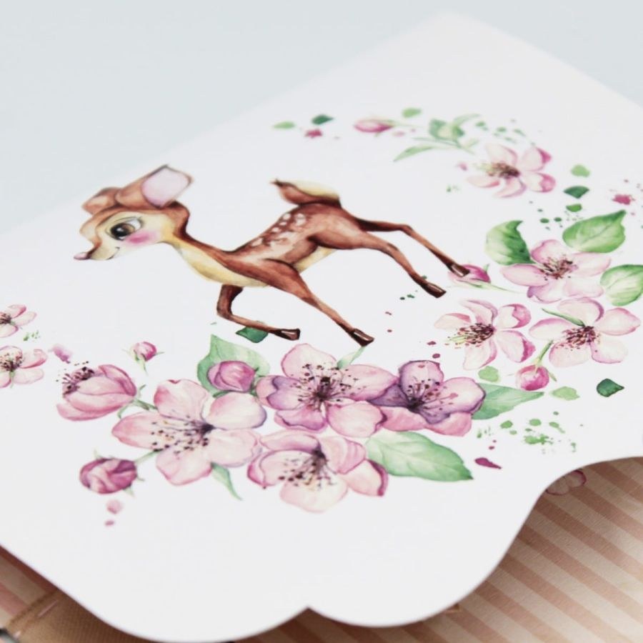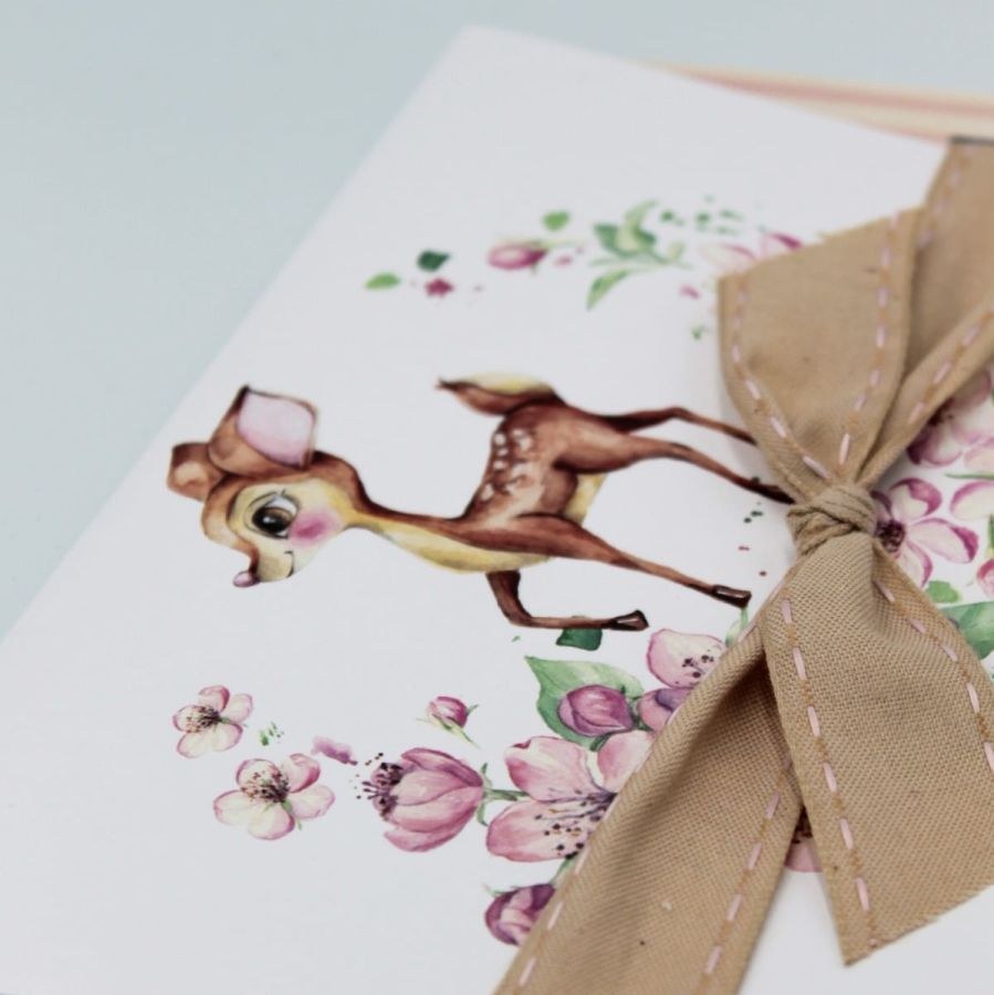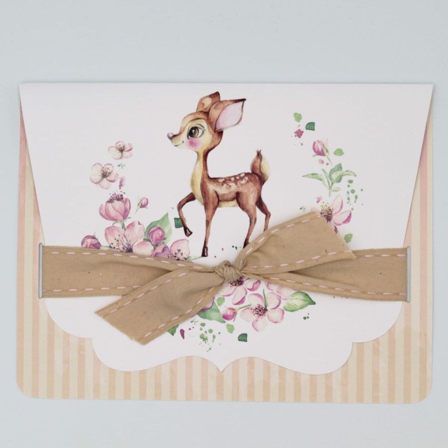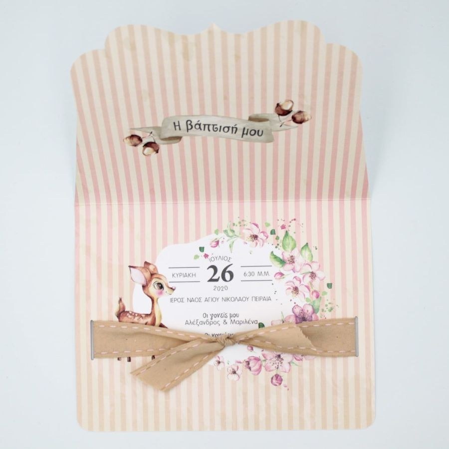 Δίπτυχο προσκλητήριο βάπτισης με θέμα τo ελαφάκι.