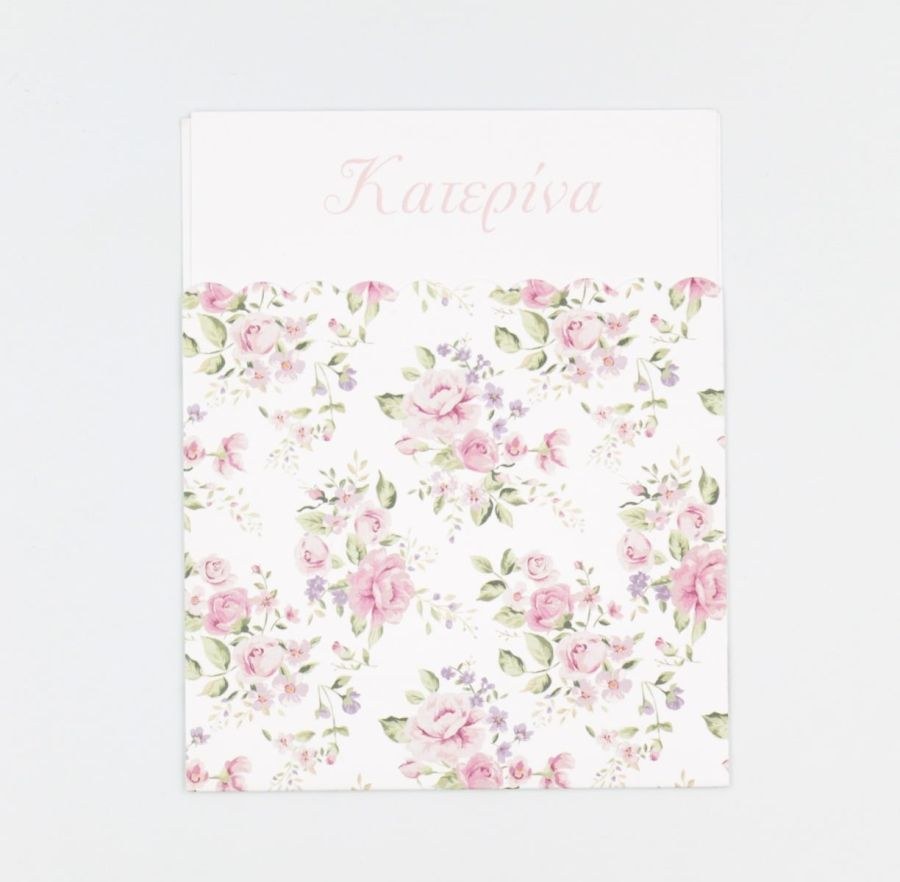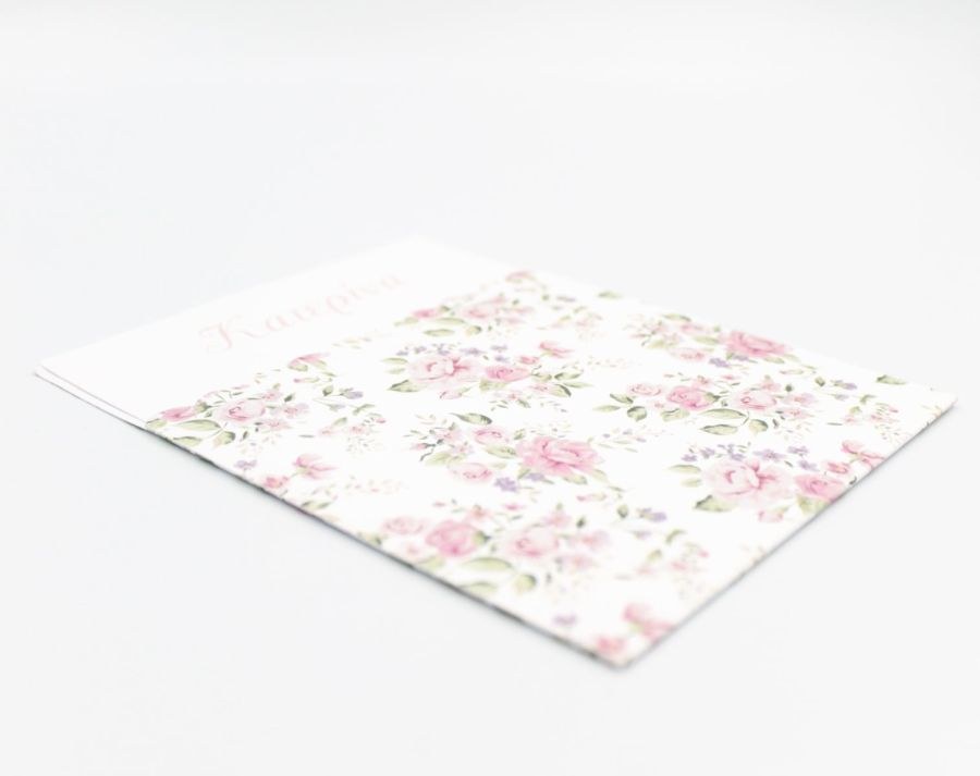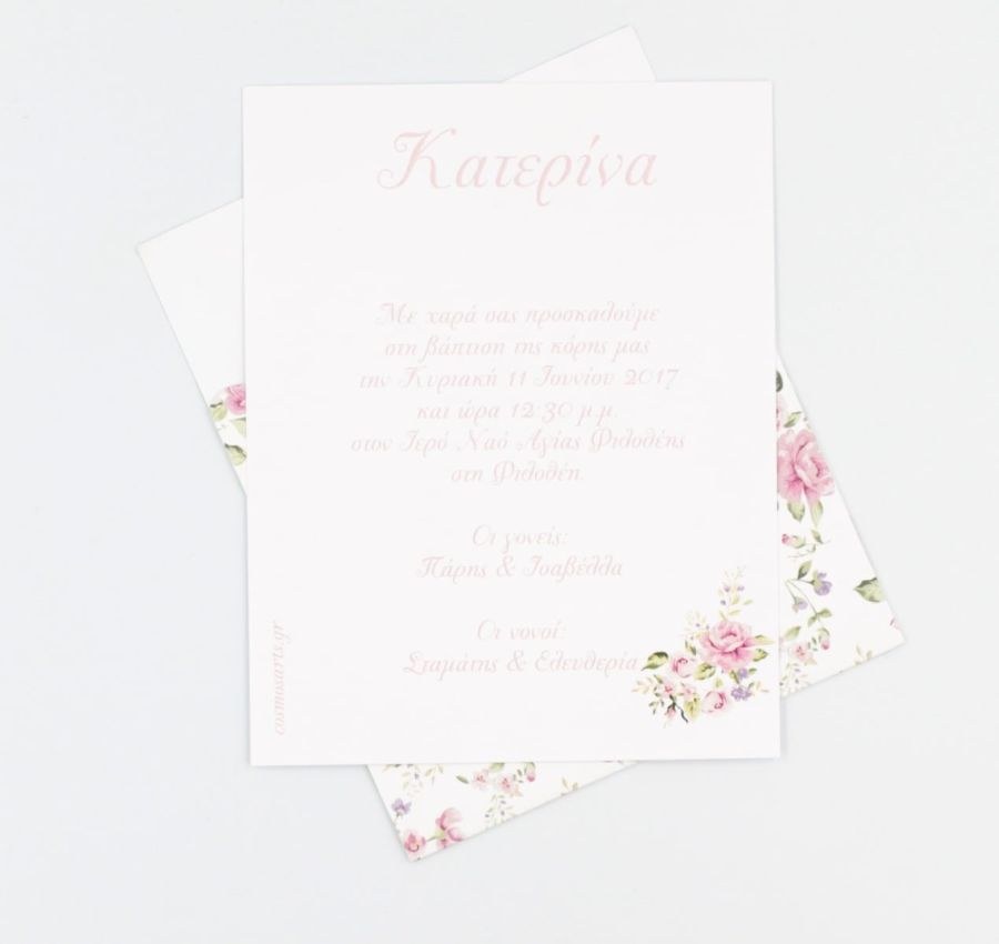 Συρταρωτό floral προσκλητήριο βάπτισης με λιλά κορδέλα στο δέσιμο!