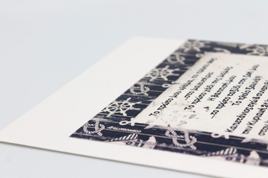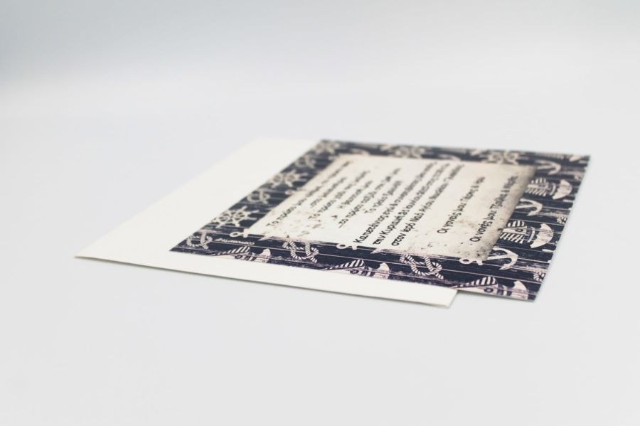 Ναυτικό προσκλητήριο βάπτισης 16x16cm. σε blue navy κουμπωτό φάκελο.