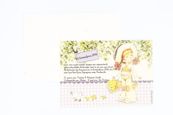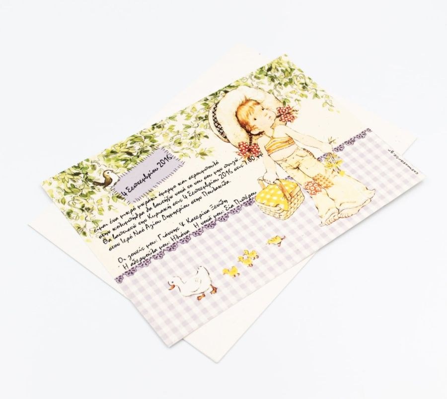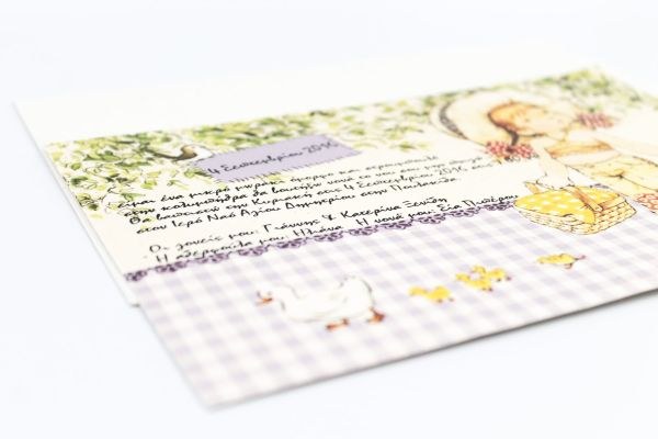 Ρομαντικό προσκλητήριο βάπτισης από ανακυκλωμένο φάκελο και κάρτα με θέμα Sarah Kay!