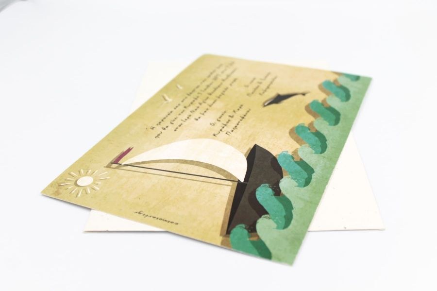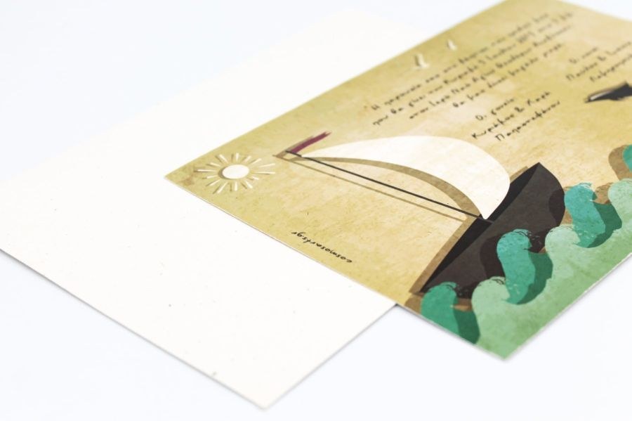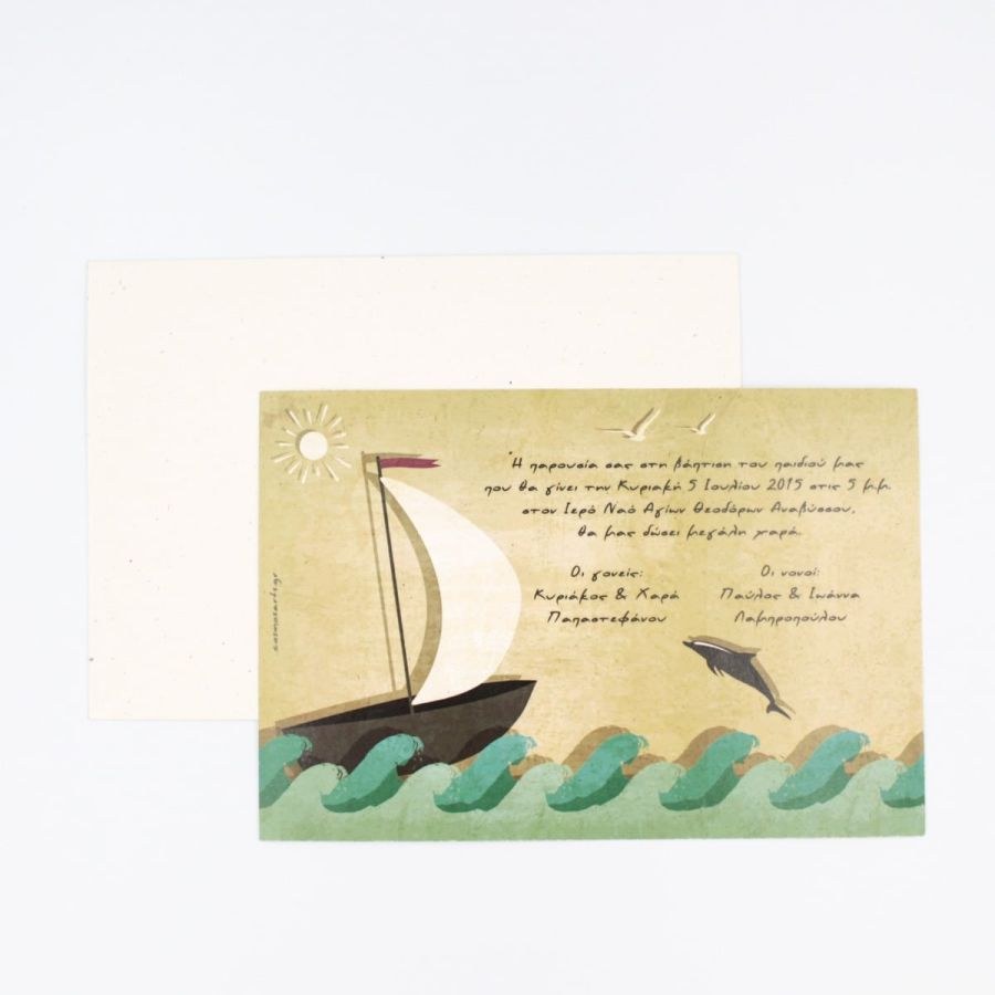 Θαλασσινό προσκλητήριο βάπτισης σε ανακυκλωμένο φάκελο και κάρτα.