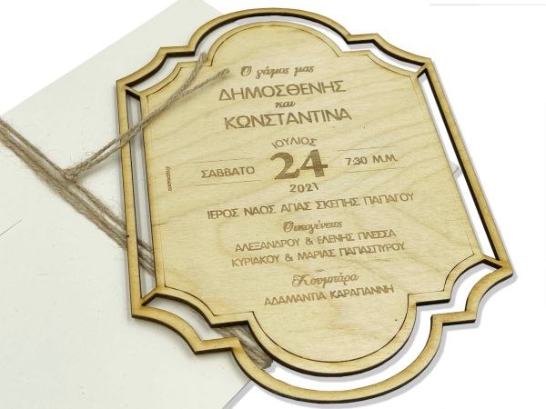 Προσκλητήριο γάμου ξύλινο κοπτικό