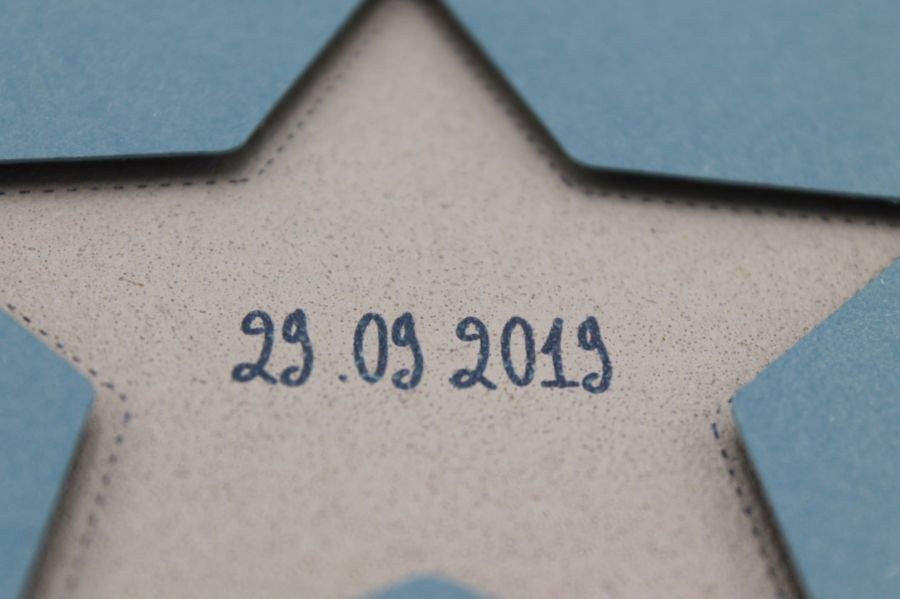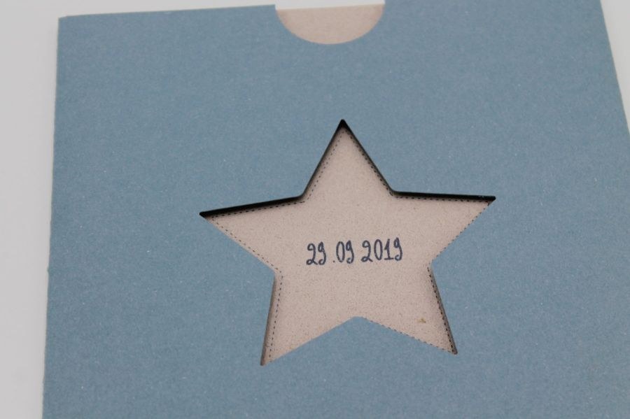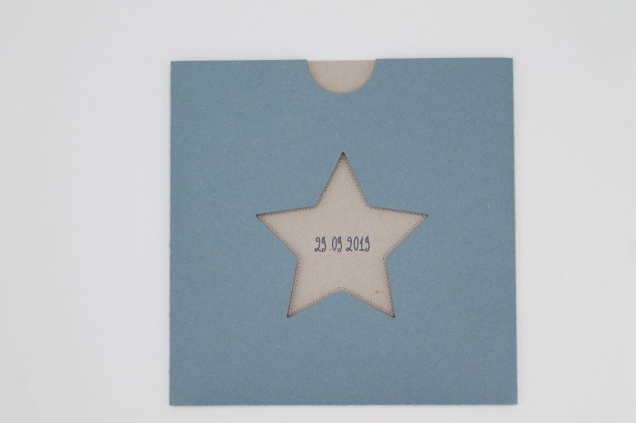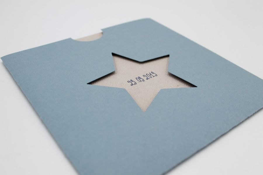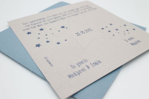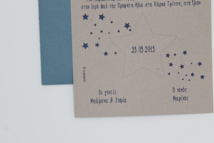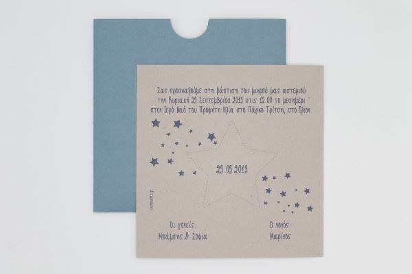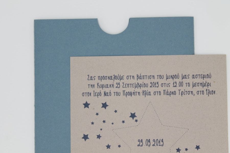 Συρταρωτό προσκλητήριο βάπτισης με θέμα το αστερί σε χρυσοτυπία.
