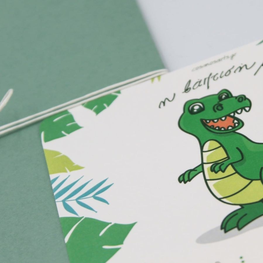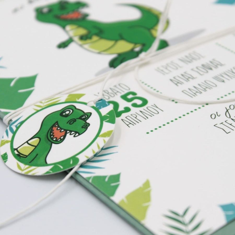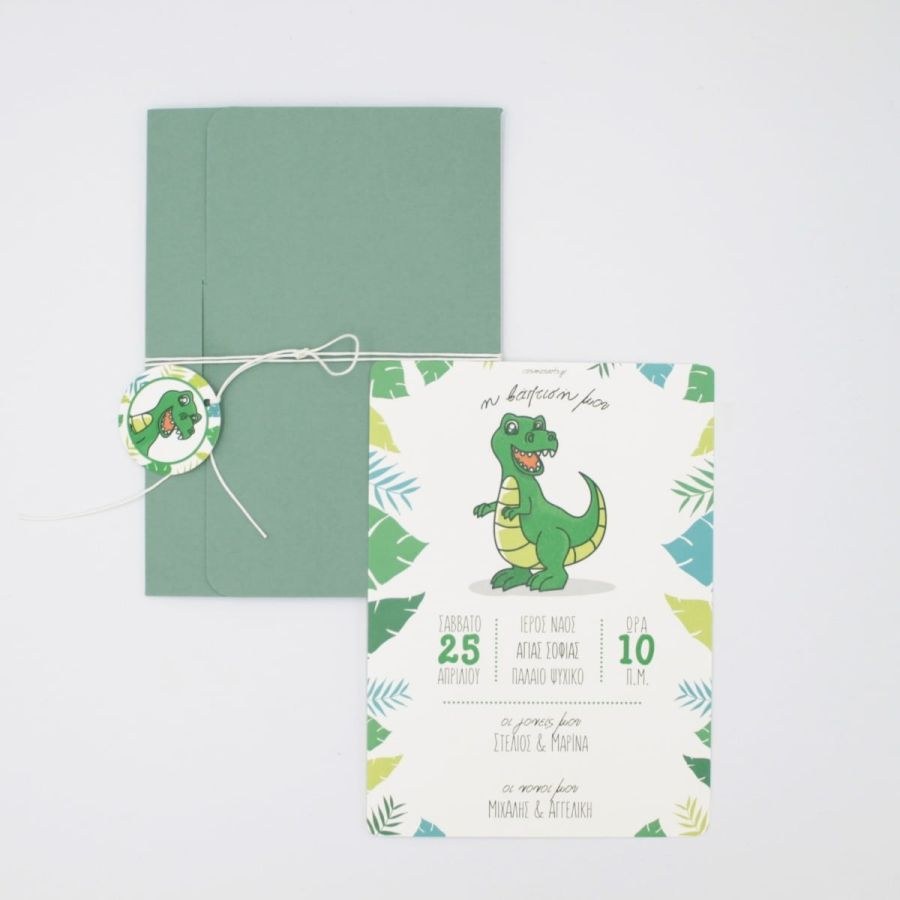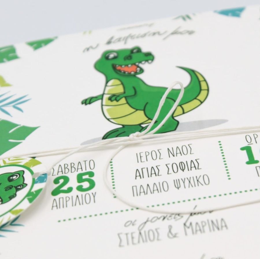 Μοντέρνο προσκλητήριο βάπτισης με θέμα τον δεινόσαυρο.