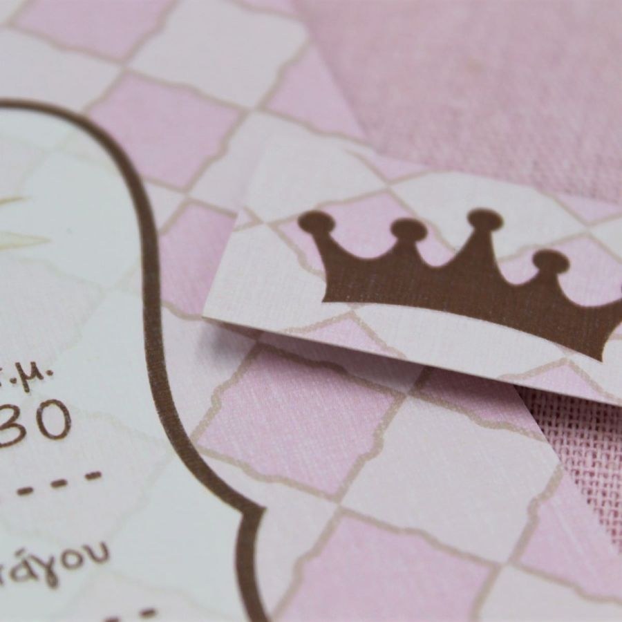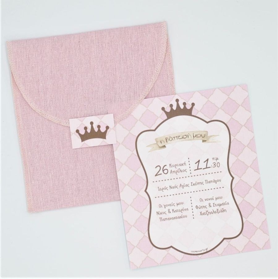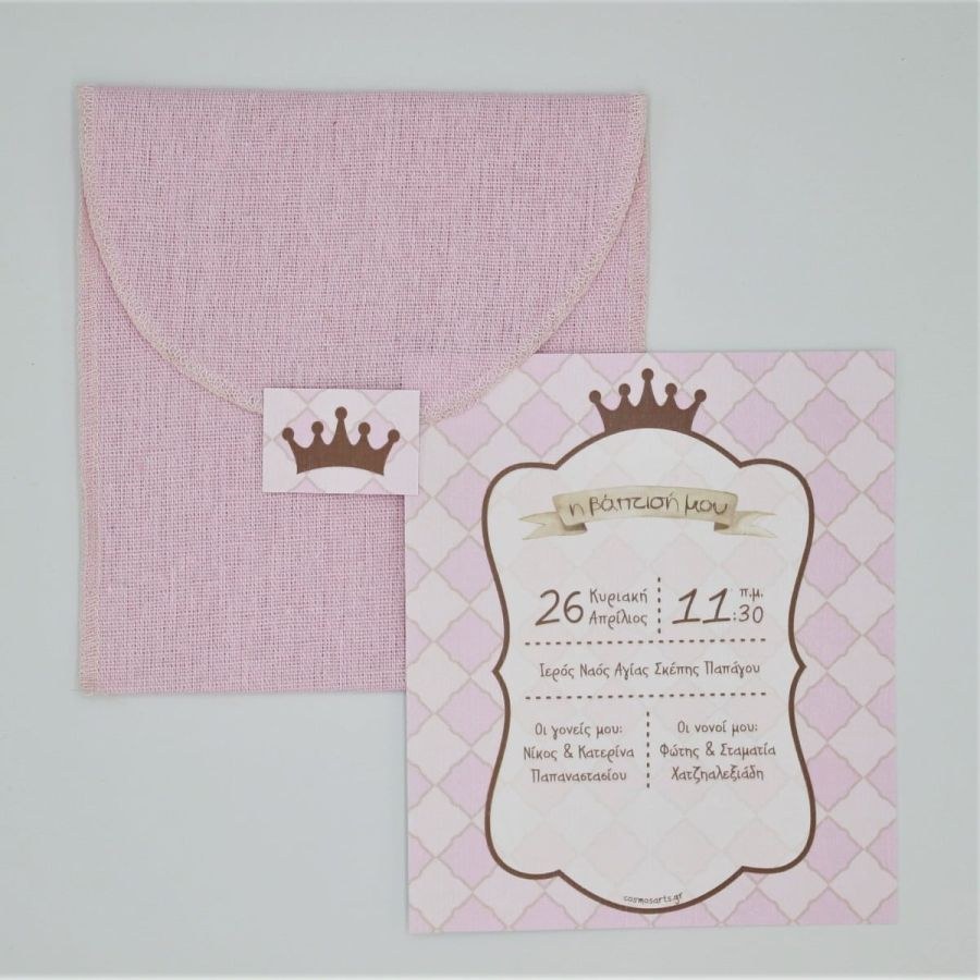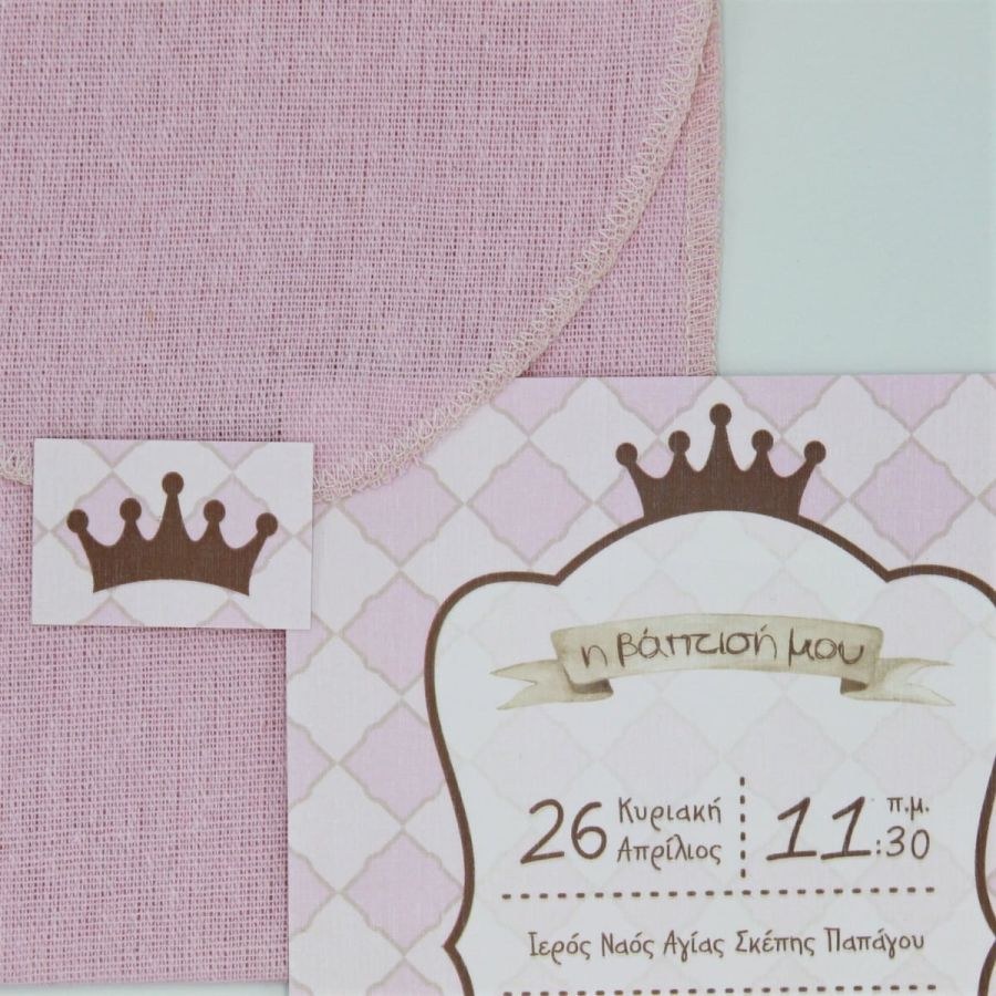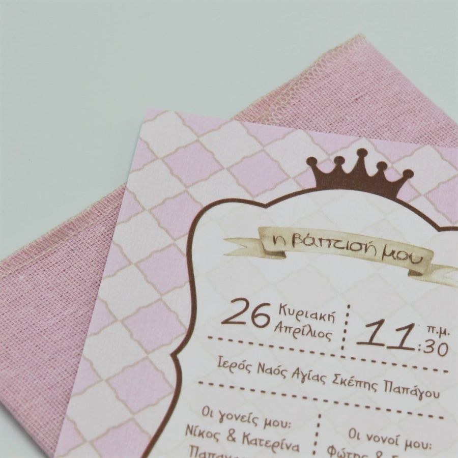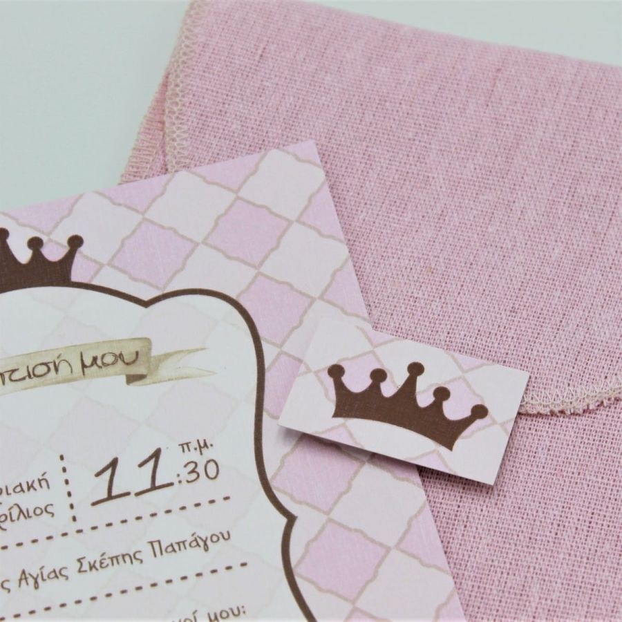 Ιδιαίτερο υφασμάτινο προσκλητήριο βάπτισης με θέμα την κορώνα.