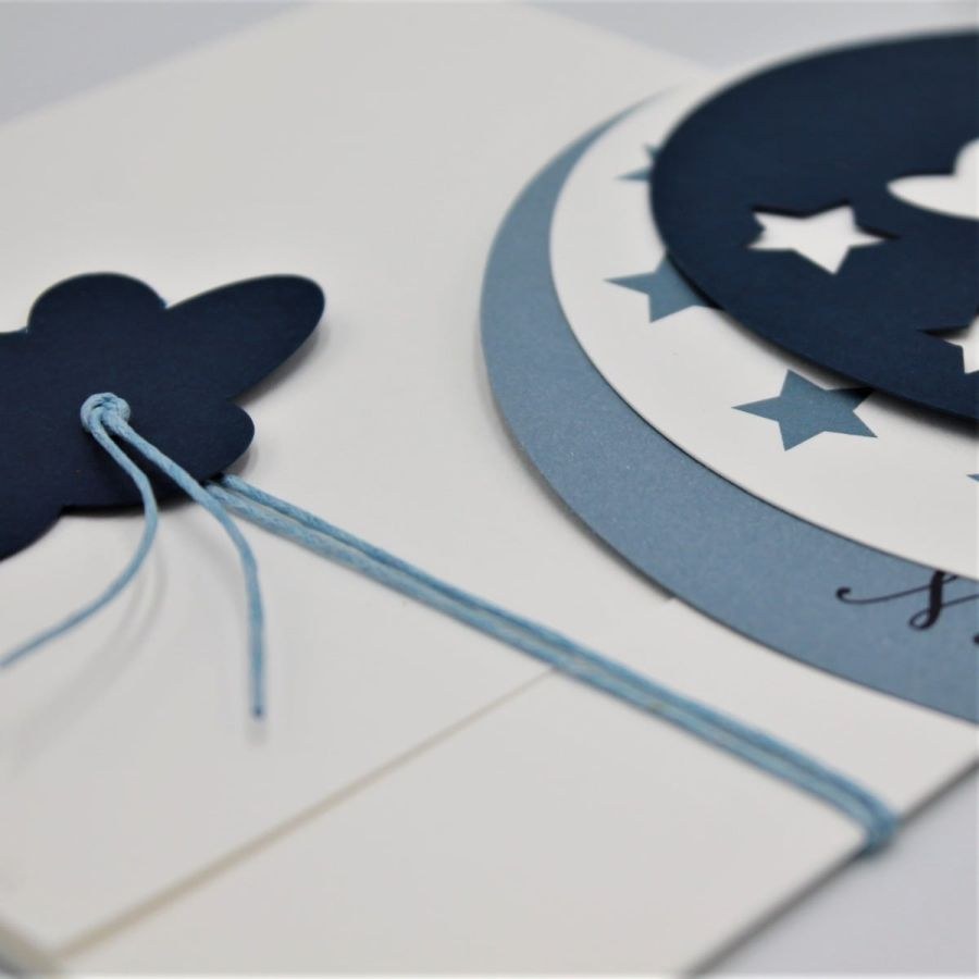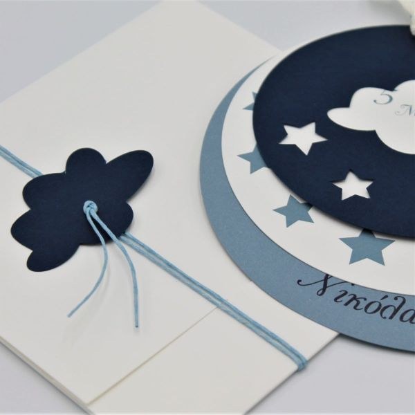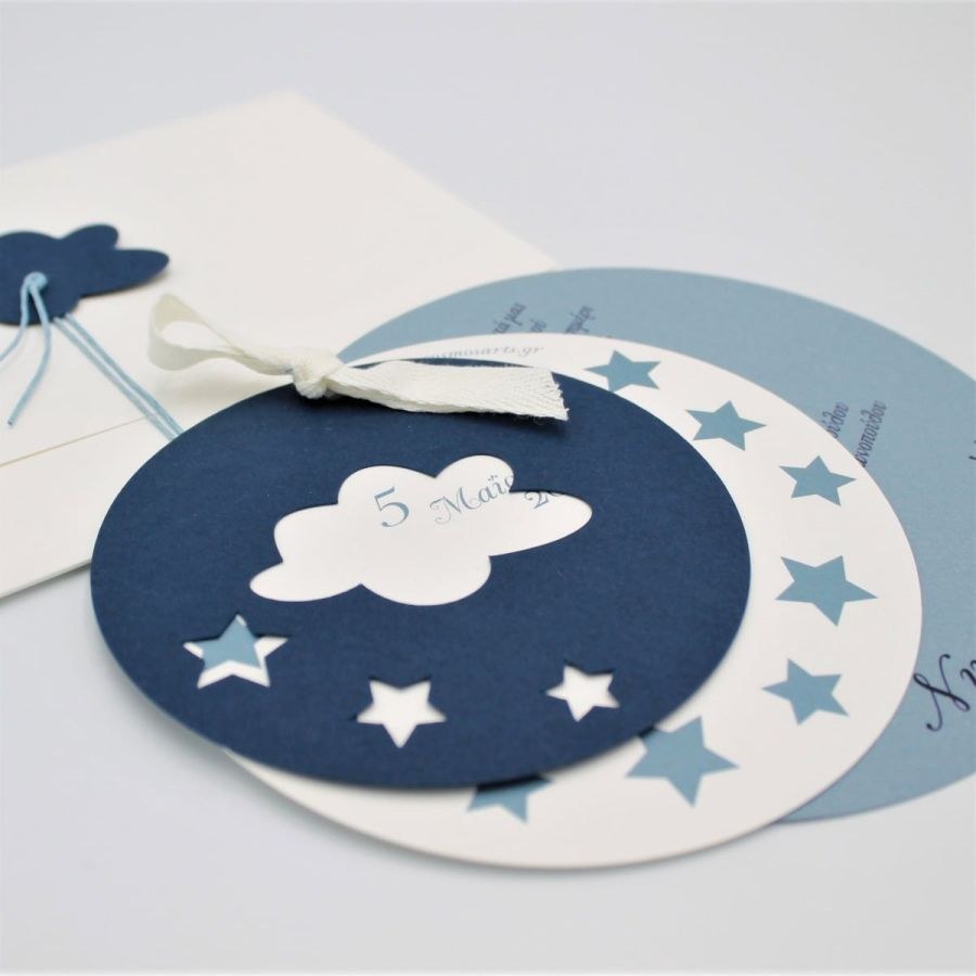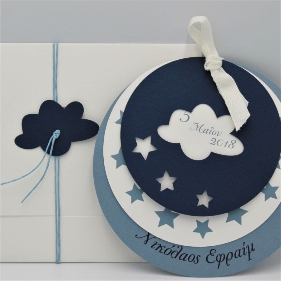 Εντυπωσιακό προσκλητήριο βάπτισης, τρεις ασύμμετρες κάρτες με κοπτικό και θέμα το αστέρι.