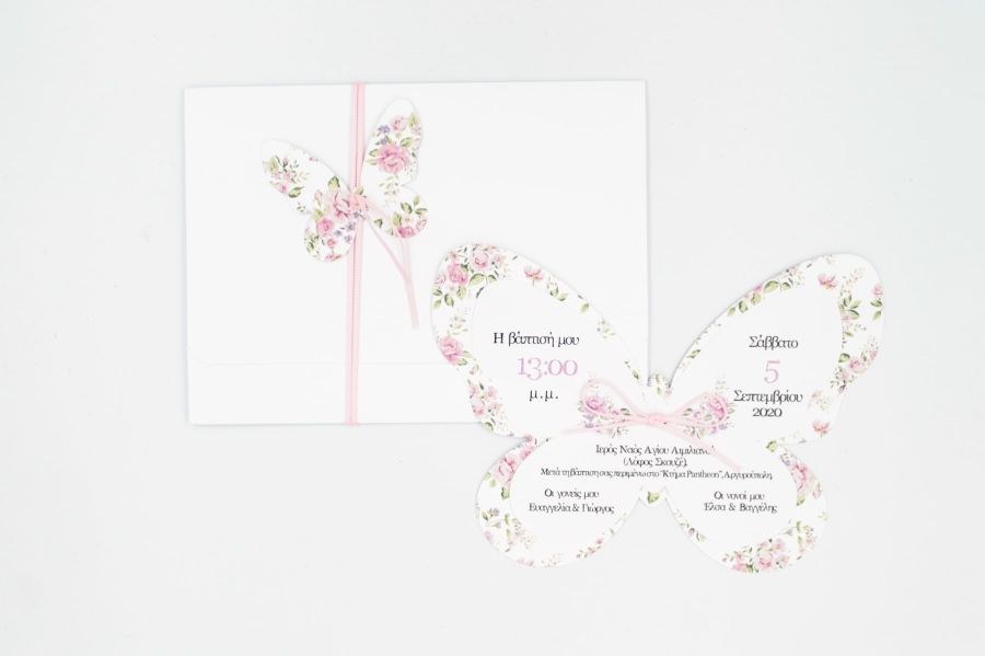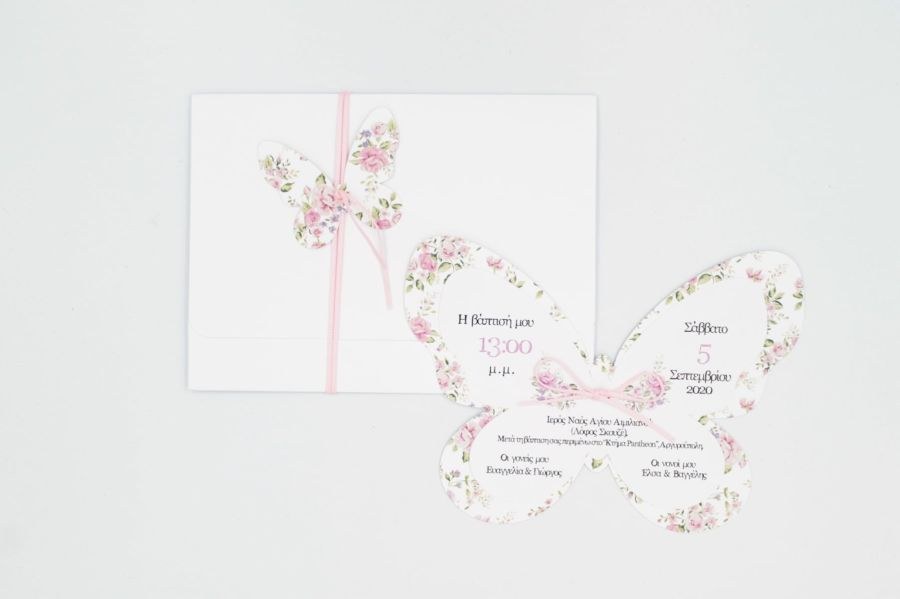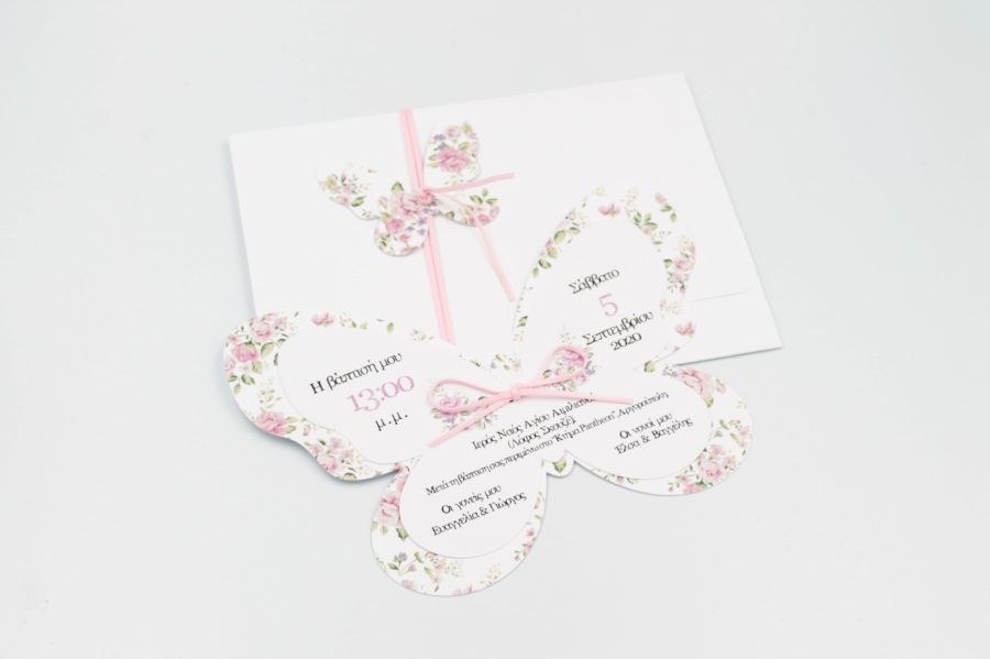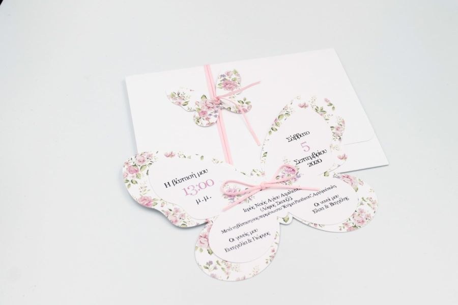 Μοναδικό προσκλητήριο βάπτισης φλοράλ κοπτικό, με θέμα πεταλούδα!