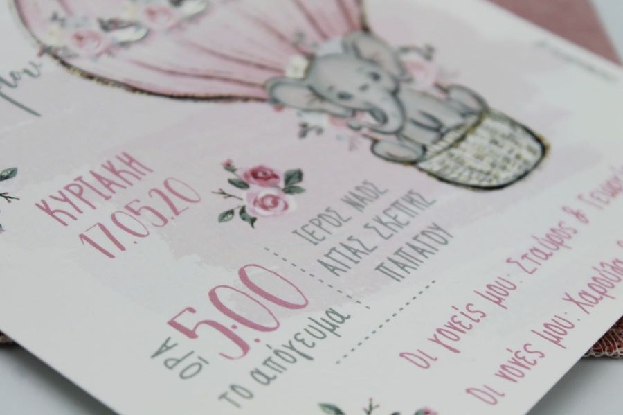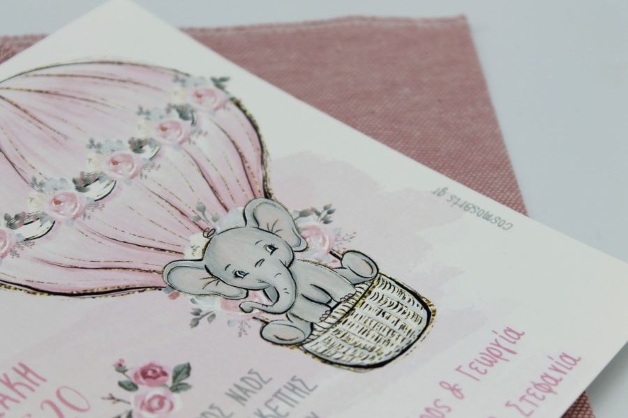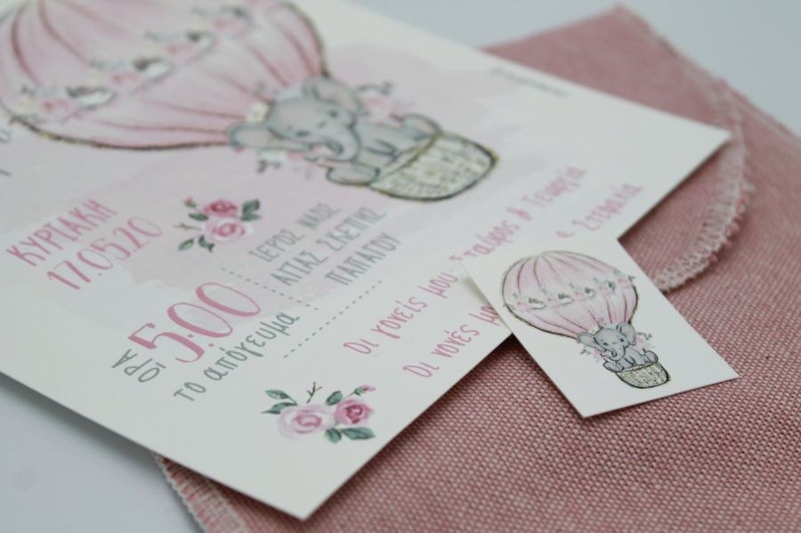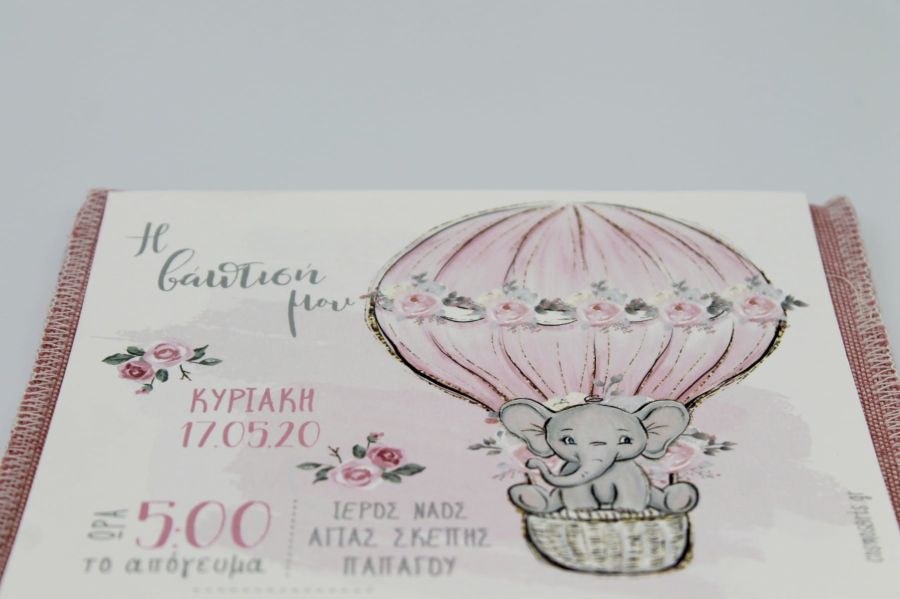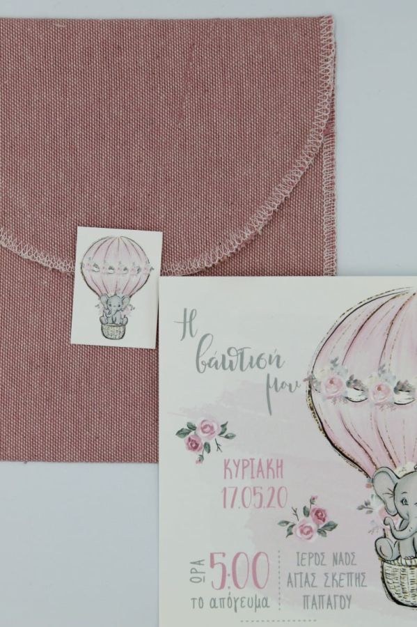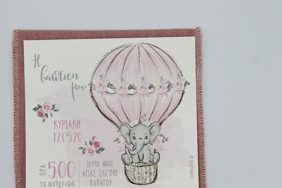 Μοναδικό υφασμάτινο προσκλητήριο βάπτισης με θέμα το ελεφαντάκι!