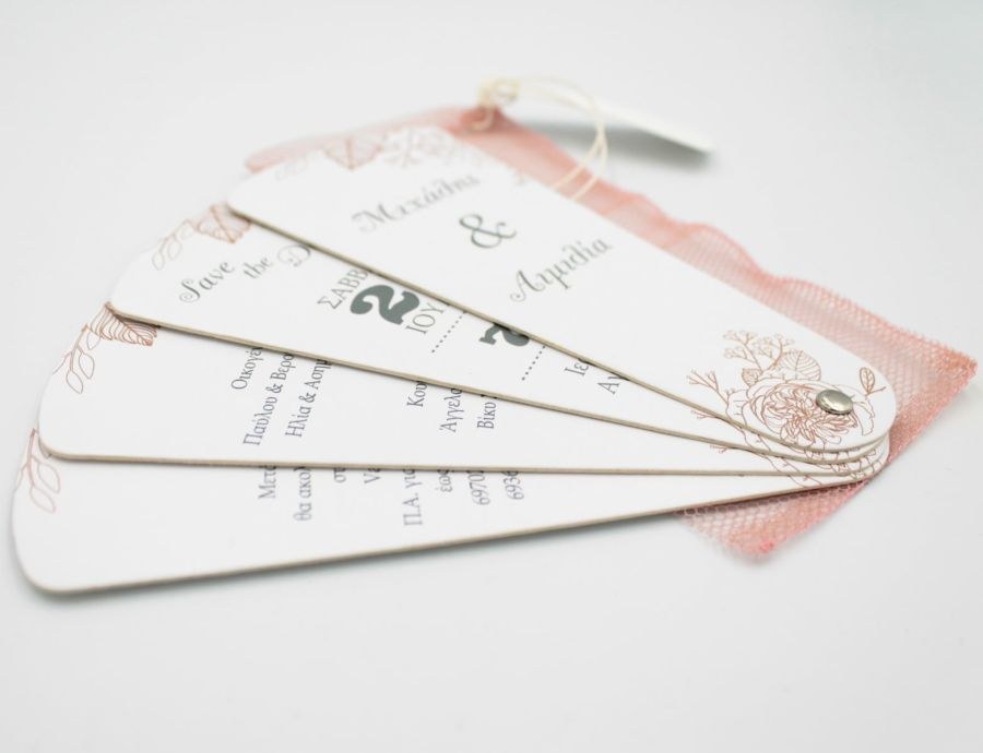 Μοναδικά προσκλητήρια γάμου βεντάλια σε τούλινο φάκελο