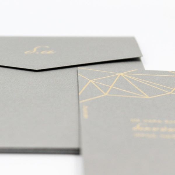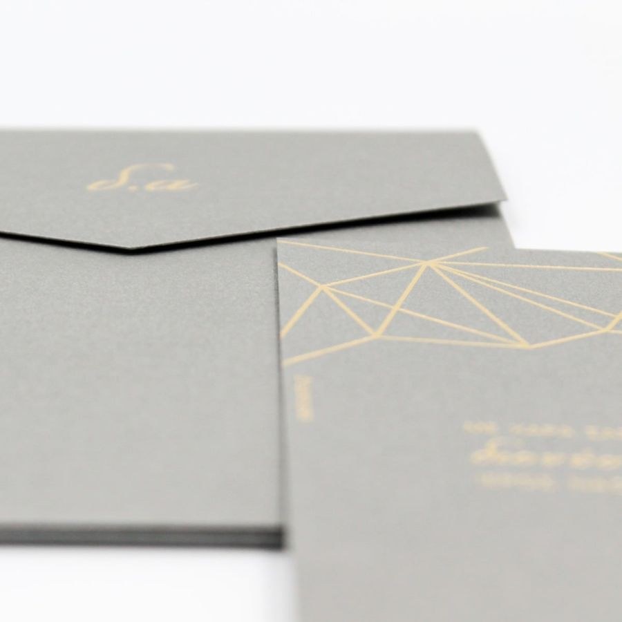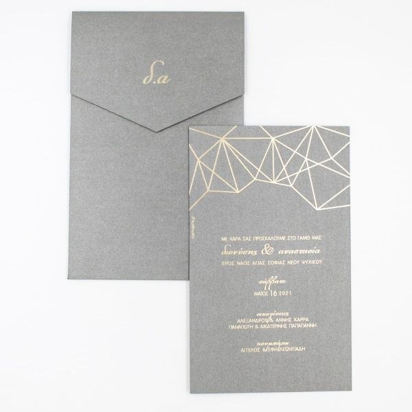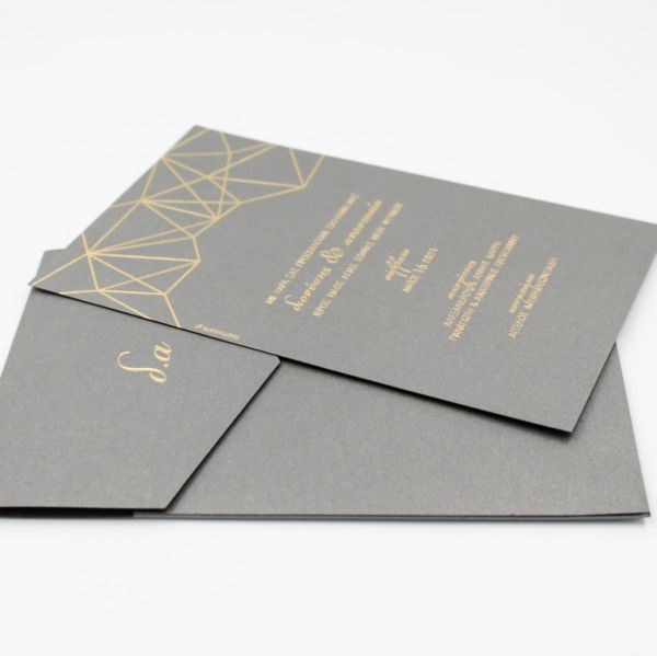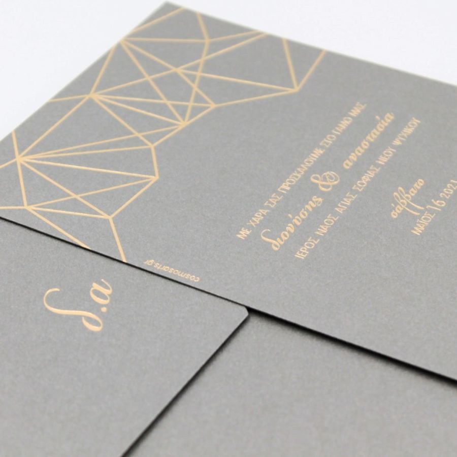 Μοναδικά προσκλητήρια γάμου, σε γκρι μεταλιζέ χαρτιά και χρυσοτυπίες