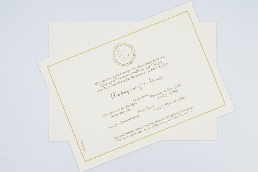 Επιβλητικό ιβουάρ προσκλητήρια γάμου, Luxury, με χρυσές σφραγίδες.