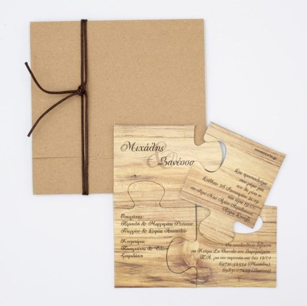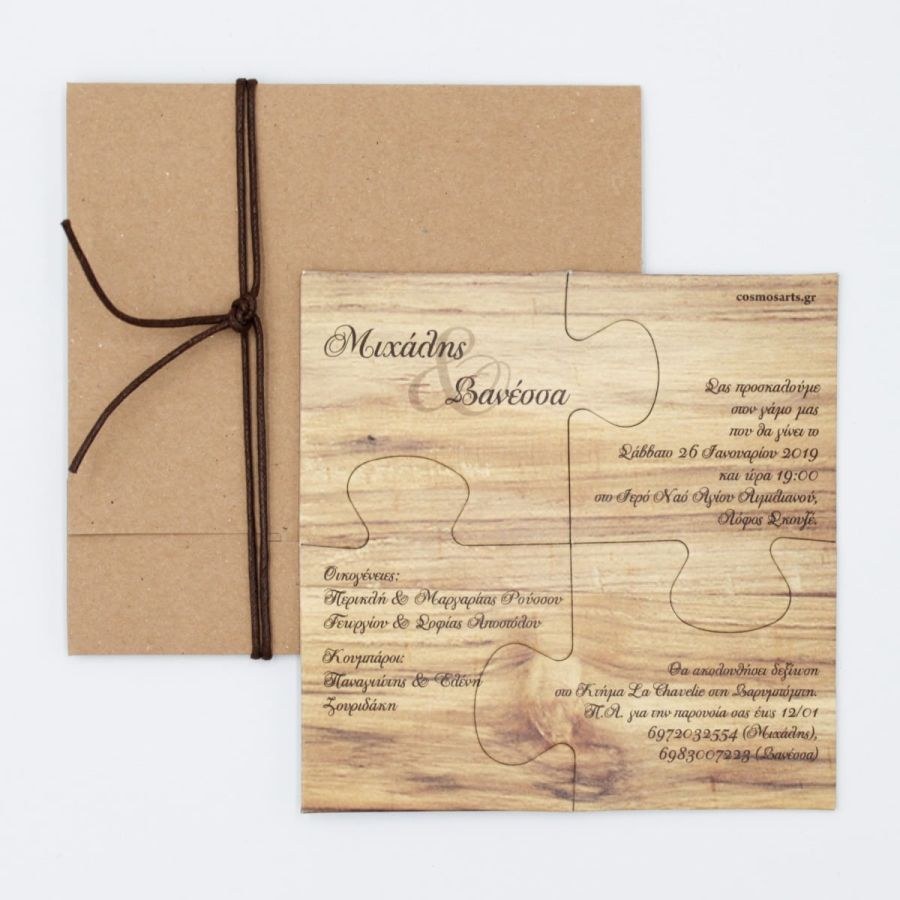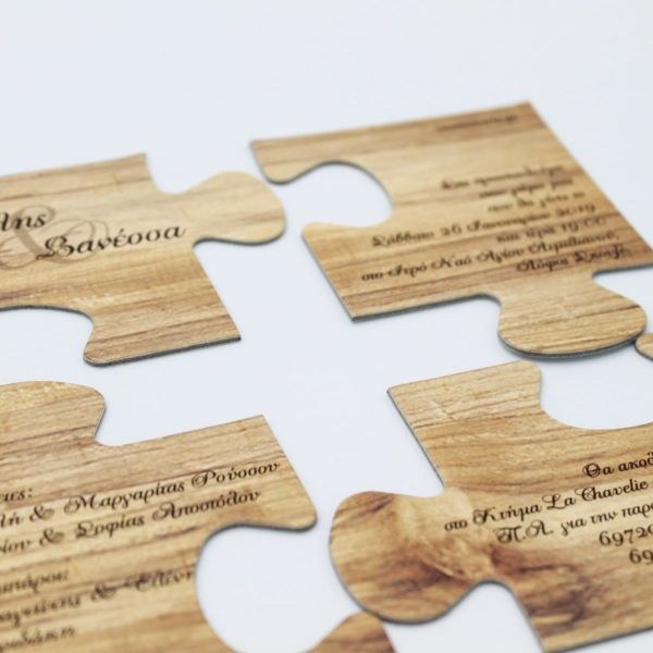 Ιδιαίτερα προσκλητήρια γάμου puzzle! tip: Φτιάχτε στο ίδιο θέμα το δικό σας βιβλίο ευχών, την μπομπονιέρα, το σουβέρ και το σουπλά