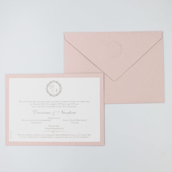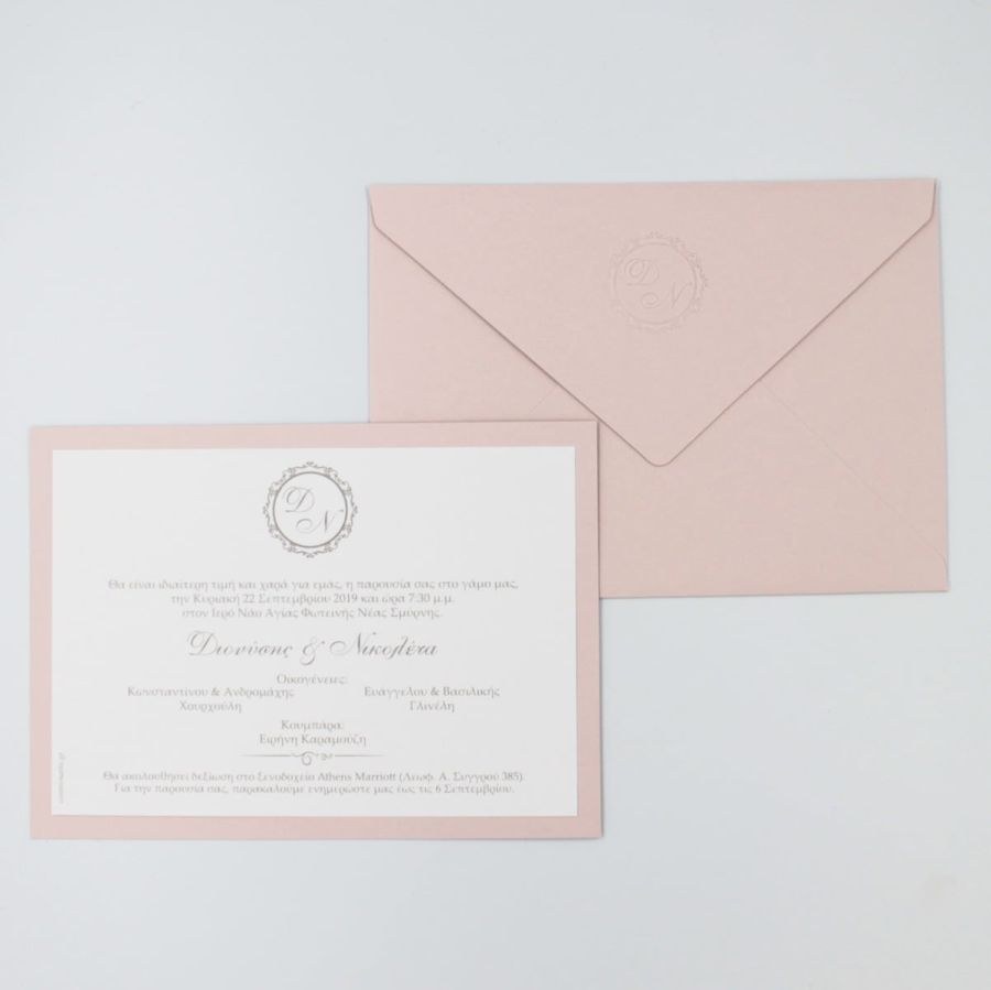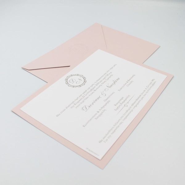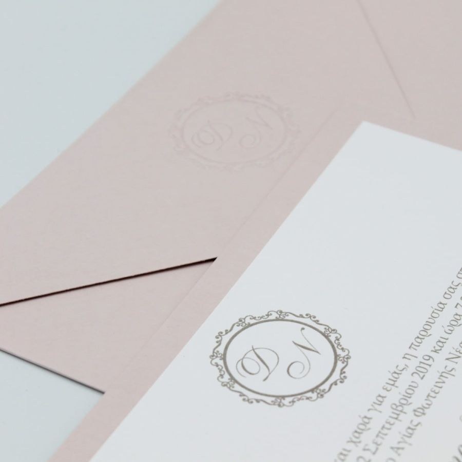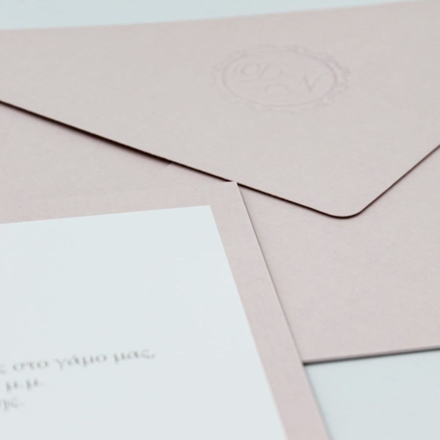 Ιδιαίτερα προσκλητήρια γάμου σε rose-nude αποχρώσεις και σφραγίδα βαθυτυπίας στο φάκελο!