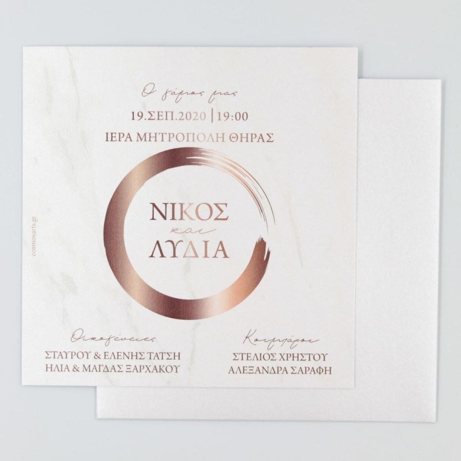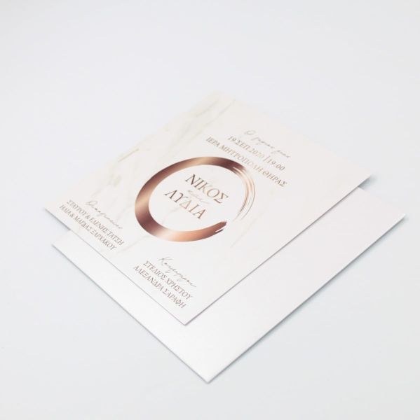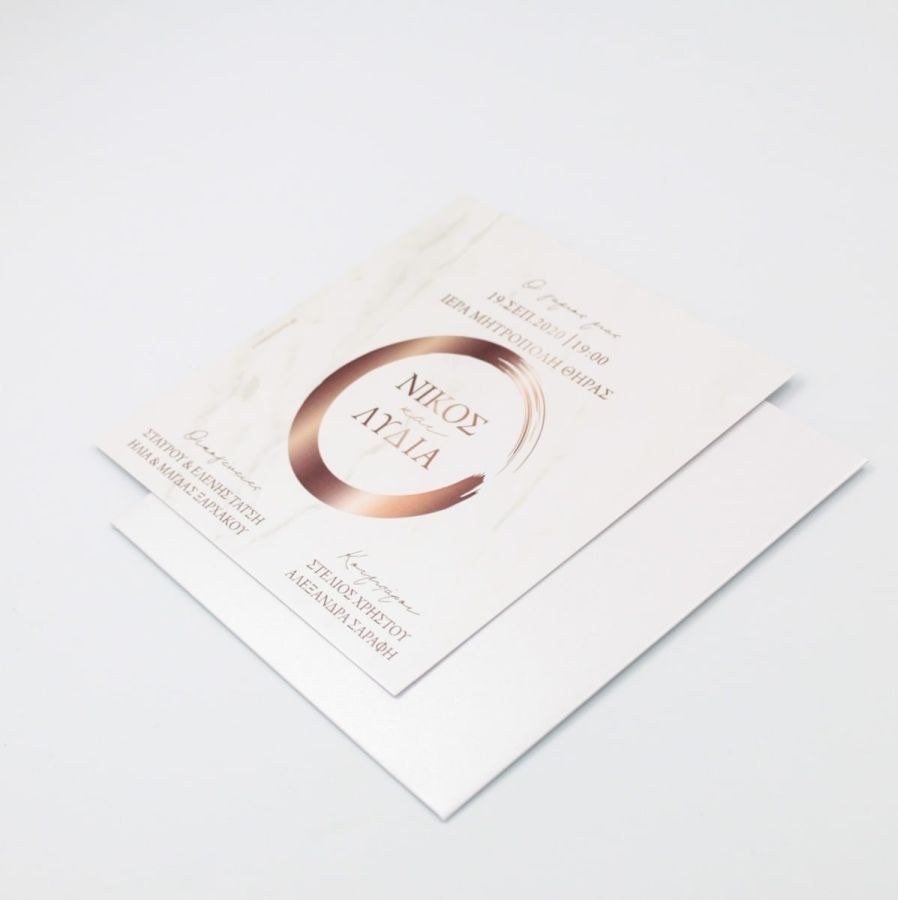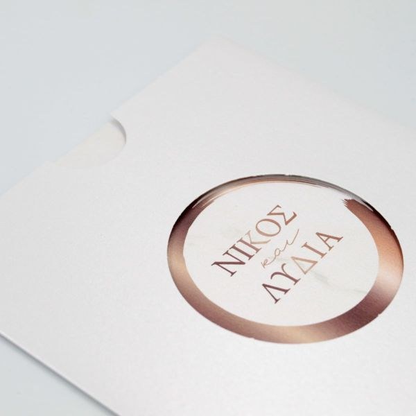 Συρταρωτό μεταλιζέ προσκλητήρια γάμου με ροζ χρυσό "πινελιές".