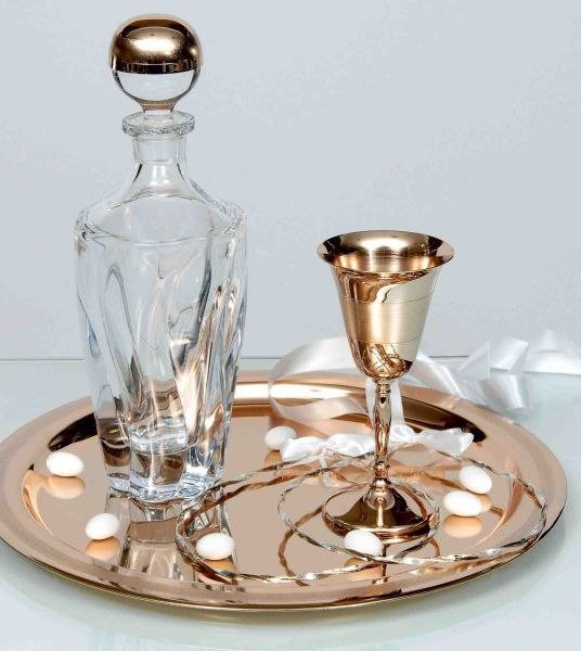 Το σετ γάμου περιλαμβάνει δίσκο, καράφα, πώμα, ποτήρι, στέφανα.