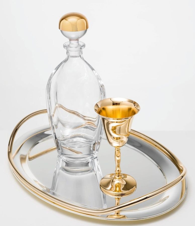 Το σετ γάμου περιλαμβάνει δίσκο,καράφα, πώμα, ποτήρι.