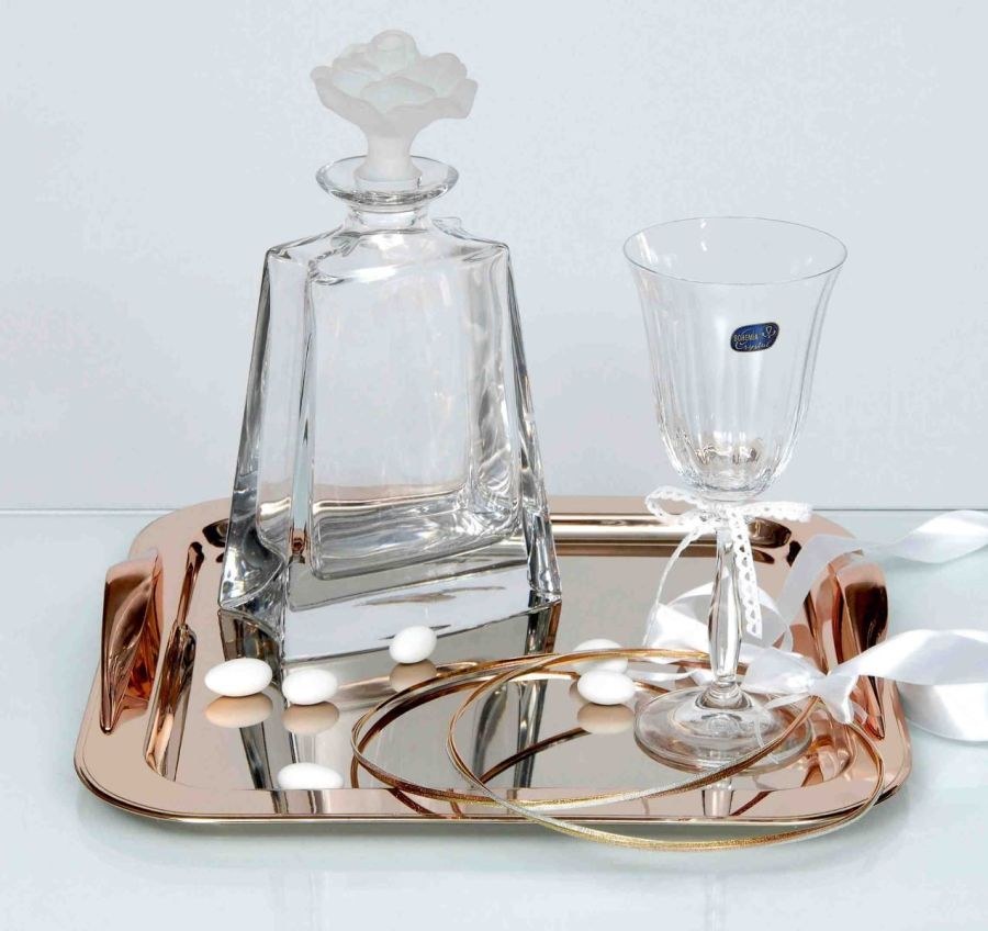 Το σετ γάμου περιλαμβάνει δίσκο, καράφα κρυστάλλινη, ποτήρι κρυστάλλινο, στέφανα γάμου.
