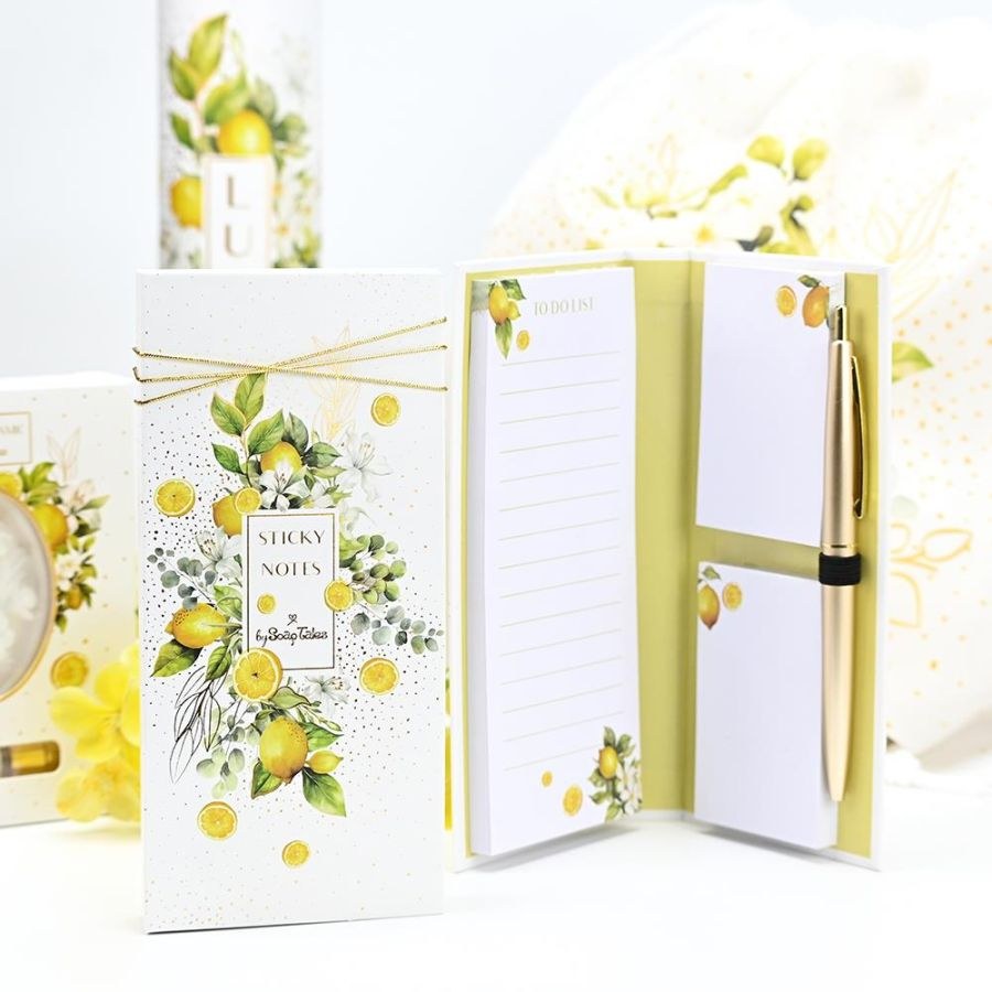 Ανακαλύψτε το μοναδικό σημειωματάριο της SoapTales με θέμα τα Λεμόνια, που περιλαμβάνει: Sticky Notes και Post-it για σημειώσεις.