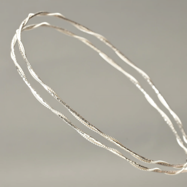 Μασίφ σφυρίλατος στογγυλός σκελετός στα 2.5mm με πλεγμένη ασημένια βέργα.