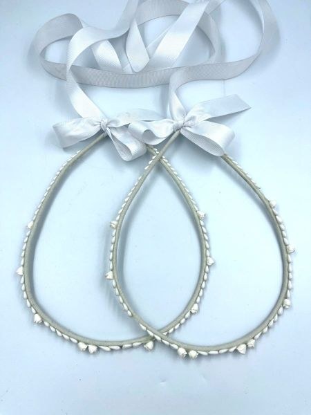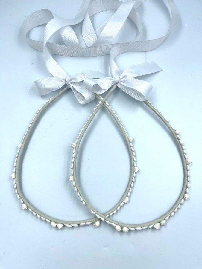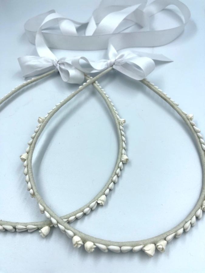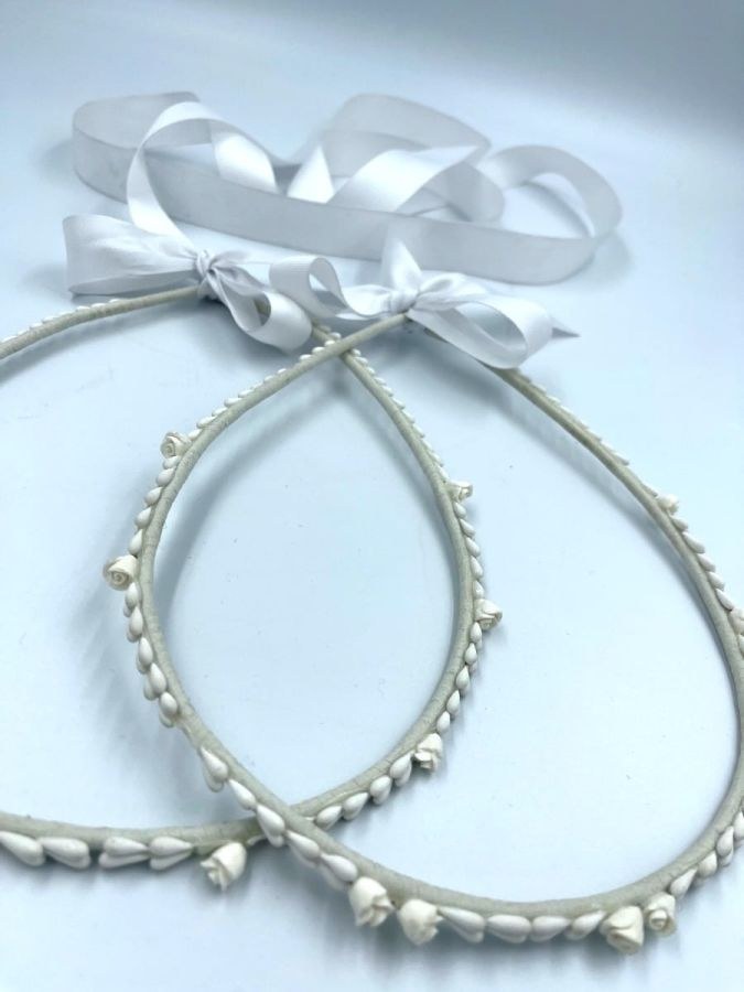 Στέφανα γάμου off white με ανθάκια και λεμονανθούς. Δέσιμο με λευκή γκρο κορδέλα.