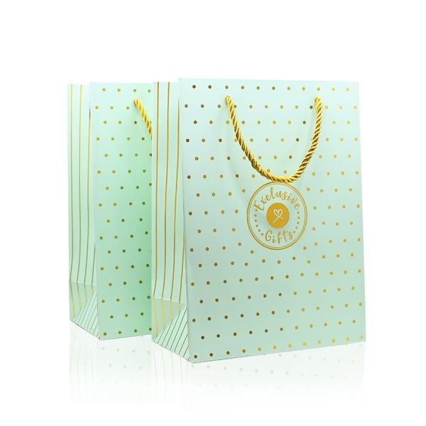 Τσάντα δώρου βεραμάν με χρυσό πουά, 18 x 24 εκ.