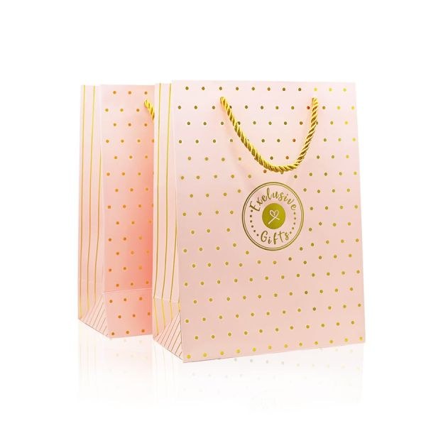 Τσάντα δώρου ροζ με χρυσό πουά, διάσταση 18 x 24 εκ.
