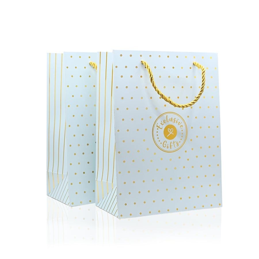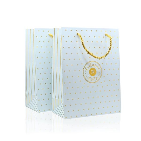 Τσάντα δώρου σιέλ με χρυσό πουά, διάσταση 18 x 24 εκ.