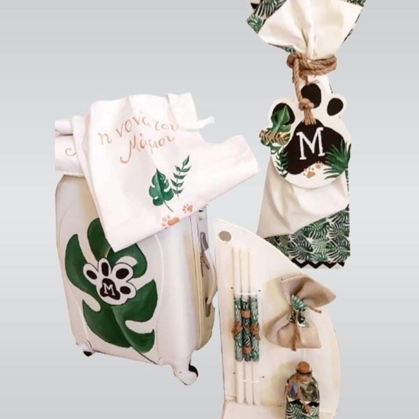 Σετ βάπτισης που περιλαμβάνει βαλίτσα, λαμπάδα και λαδοσετ.