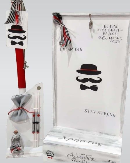 Σετ βάπτισης που περιλαμβάνει πορτ μαντώ, λαμπάδα και λαδοσετ.