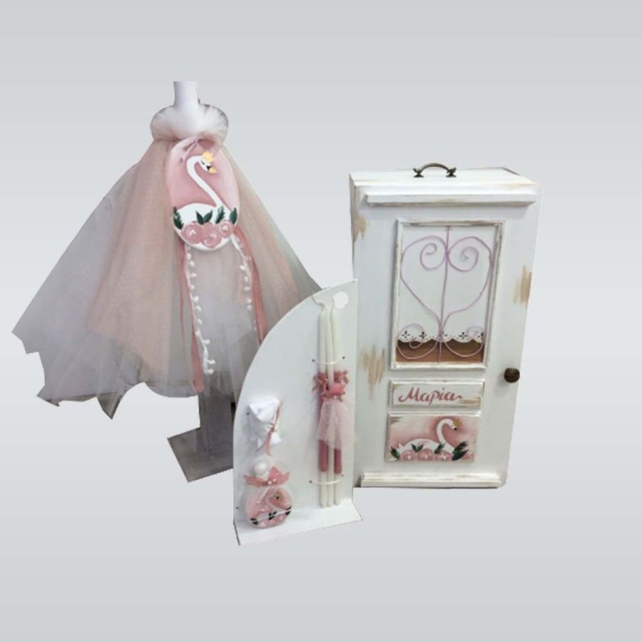 Σετ βάπτισης που περιλαμβάνει πόρτα, λαμπάδα και λαδοσετ.