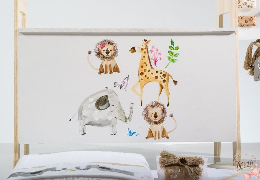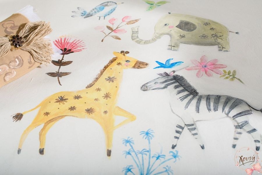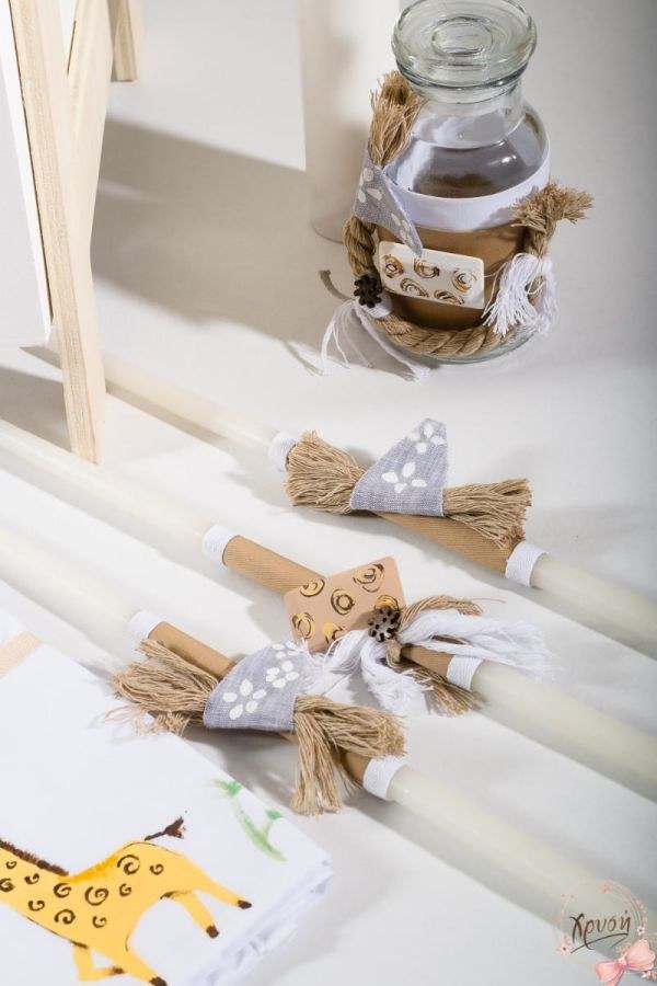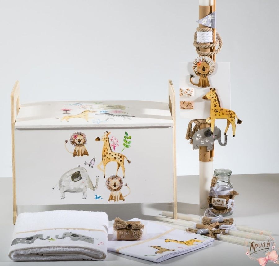 Σετ βάπτισης που περιλαμβάνει θρανίο ζωγραφισμένο, λαμπάδα και λαδοσετ.