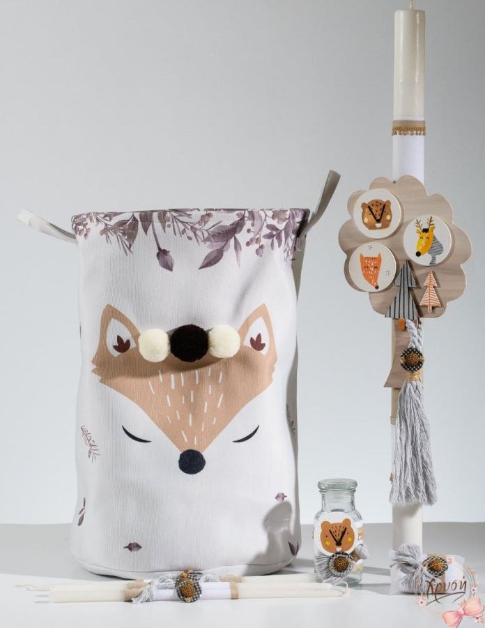 Σετ βάπτισης που περιλαμβάνει τσάντα, λαμπάδα και λαδοσετ.