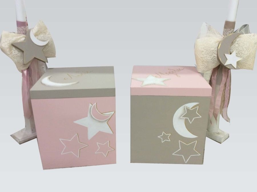 Σετ βάπτισης με θέμα το αστέρι, και περιλαμβάνει κουτί, λαμπάδα, λαδοσετ.
